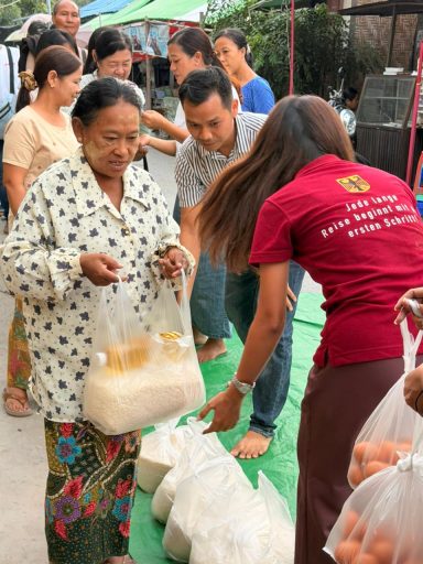 Im Erdbebenzentrum von Mandalay sind wir unermüdlich aktiv und setzen alles daran, den Erdbebenopfern effektiv zu helfen und wirkungsvolle Hilfsmaßnahmen zu koordinieren. Die Lage erfordert weiterhin unsere Hilfe, da unzählige Menschen in den betroffenen Gebieten verletzt und obdachlos sind. Hilfsorganisationen arbeiten rund um die Uhr, um Nahrung, Wasser und medizinische Versorgung bereitzustellen. Unsere engagierten Teams vor Ort unternehmen unter der Führung von Thandar alles, um Leben zu retten, die Versorgung mit dem Nötigsten sicherzustellen und vor allem Hoffnung zu schenken.